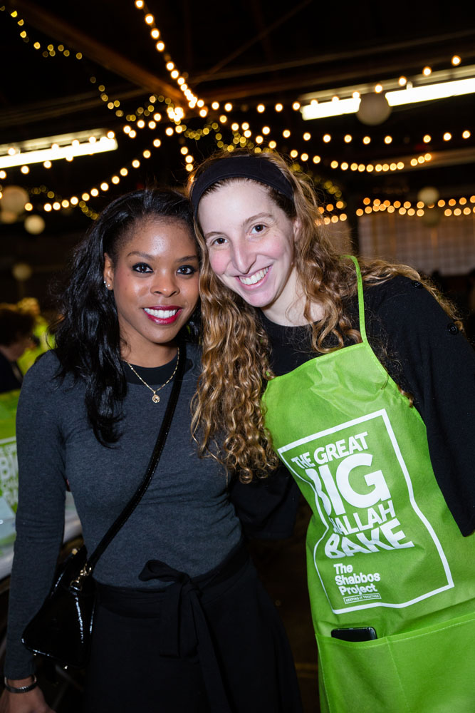 At 6:45 p.m., you could stand at the east entrance of the Royal Oak Farmers Market and take in the calm before the storm. A ceiling strung with paper lanterns and twinkling lights. A stage set and projector screens fired up. Row after row of tables neatly arranged with bowls, flour, salt, measuring cups, everything needed to make the perfect challah dough. The finishing touch – at every seat, a lime green apron printed with the words everyone had been talking about for weeks, “The Great Big Challah Bake.”
