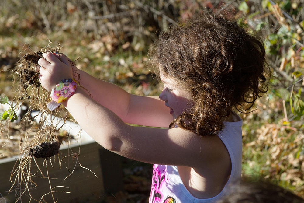 We couldn’t have asked for a sunnier afternoon or a brighter, bouncier group of preschoolers to demonstrate the power of a little hands-on experience in the garden. With the goal to turn the beds and put the garden to sleep for the winter at Hillel Day School, Hazon educator, Batsheva Glatt joined “Mrs. Barb’s” pre-Kindergarten class recently for just a preview of wonderful things to come from the partnership of Hazon with Jewish organizations throughout metro Detroit.